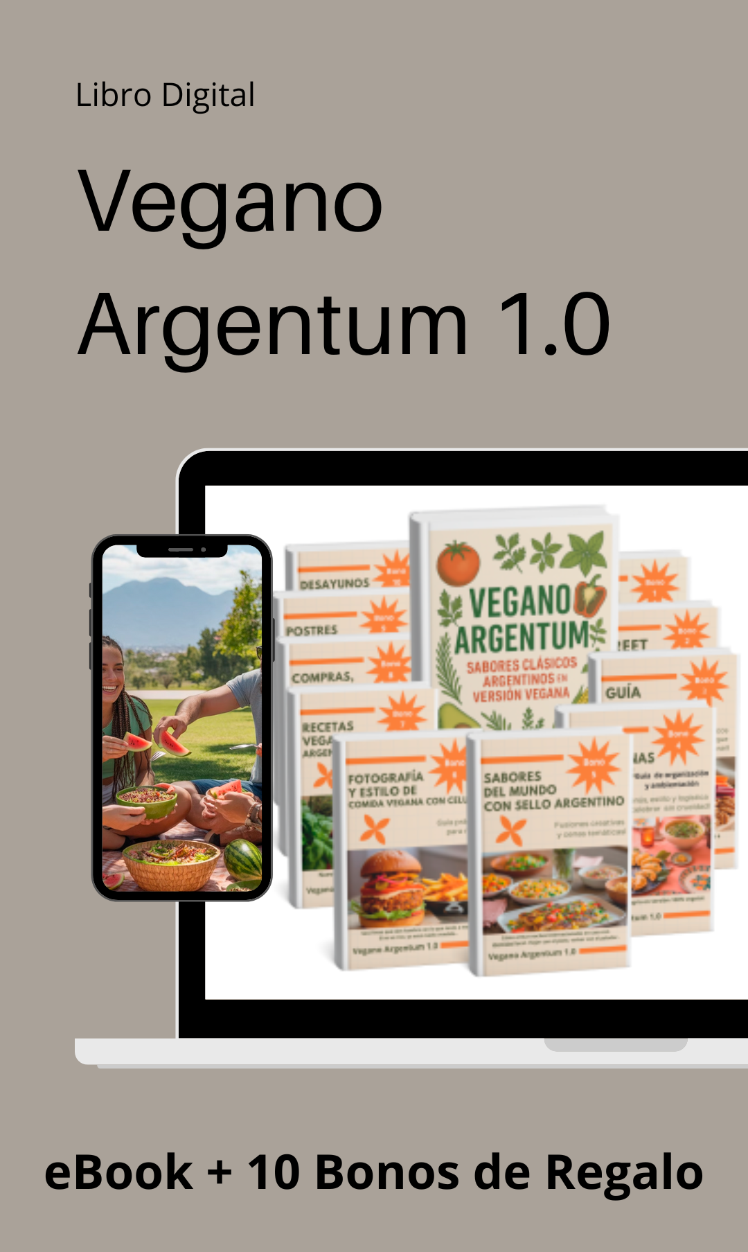 Vas a recibir el Libro Digital Vegano Argentum 1.0 en formato PDF para descargar al instante, más 10 bonos indicados en la página, también en formato PDF. Si querés lo podés imprimir, pero tené en cuenta que es a color, tiene fotos y contiene 380 páginas.